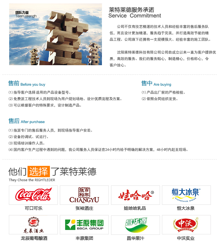 鐵嶺某電力建筑安裝公司主要經(jīng)營(yíng):房屋建筑,生產(chǎn)龍賜牌純凈水,計(jì)算機(jī)零售等產(chǎn)品。作為經(jīng)營(yíng)房屋建筑,生產(chǎn)龍賜牌純凈水的企業(yè),該公司始終堅(jiān)持誠(chéng)信和讓利于客戶,堅(jiān)持用自己的服務(wù)去打動(dòng)客戶。萊特萊德公司為其提供純凈水設(shè)備有效促進(jìn)了該公司的經(jīng)濟(jì)效益。